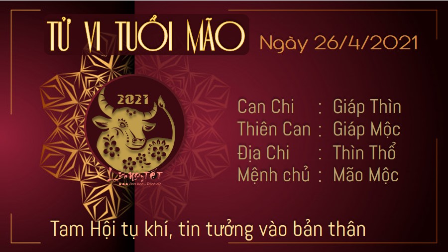 Tam Hội tụ khí, tuổi Mão thực hiện những kế hoạch đã đặt ra từ trước một cách thuận lợi. Bản mệnh dần trở nên tự tin và quyết đoán hơn, bởi bạn biết rằng mình cũng có những điểm mạnh riêng và mình chẳng hề thua kém bất cứ ai. May mắn hơn, trong ngày hôm nay, quý nhân có thể xuất hiện để giúp bạn chỉ ra hướng khắc phục những khúc mắc đã tồn tại suốt thời gian qua, cũng như đưa ra định hướng cho tương lai của bạn. Tuy nhiên, Mộc khắc Thổ khuyên bản mệnh hãy quan tâm đến một nửa của mình nhiều hơn, chớ nên ích kỷ chỉ biết có bản thân. Đừng cho rằng việc người ấy phải nghe theo mình là hiển nhiên mà bỏ qua cảm xúc của đối phương.