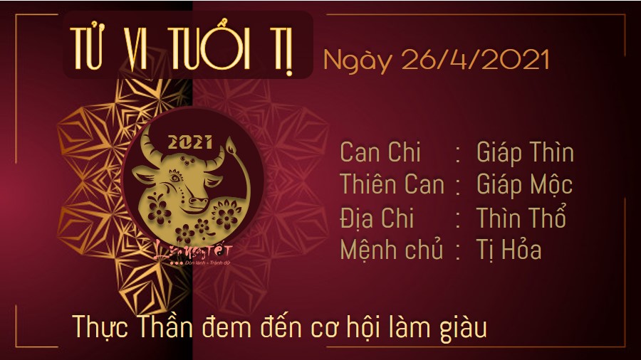 Thực Thần đem lại cơ hội làm giàu cho những người tuổi Tị làm nghề tự do. Chỉ cần bạn không ngại vất vả thì bạn sẽ gặt hái được những thành quả khả quan, thậm chí khiến mọi người xung quanh ngưỡng mộ. Con giáp này nên mở rộng mối quan hệ với khách hàng, đối tác nếu muốn tìm kiếm được nhiều cơ hội làm ăn hơn nữa. Hoạt động xã giao là vô cùng cần thiết và đem lại nhiều ích lợi, bạn không nên trốn tránh việc này. Hỏa sinh Thổ, bản mệnh có một ngôi nhà khá yên bình. Gia đình là chốn nghỉ ngơi của bạn sau một ngày làm việc đầy vất vả. Vì thế, nếu có khúc mắc trong lòng, bạn hãy thoải mái tâm sự với mọi người nhé.