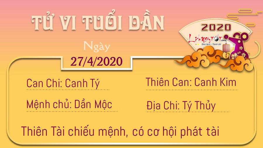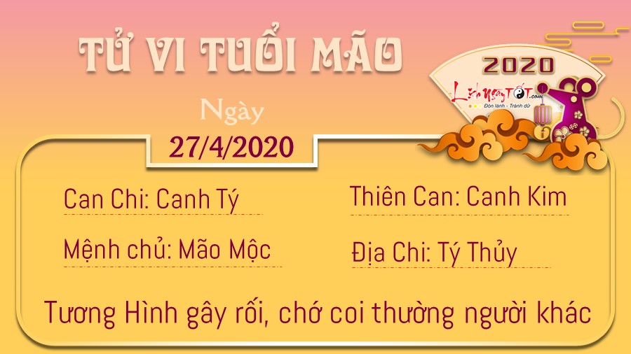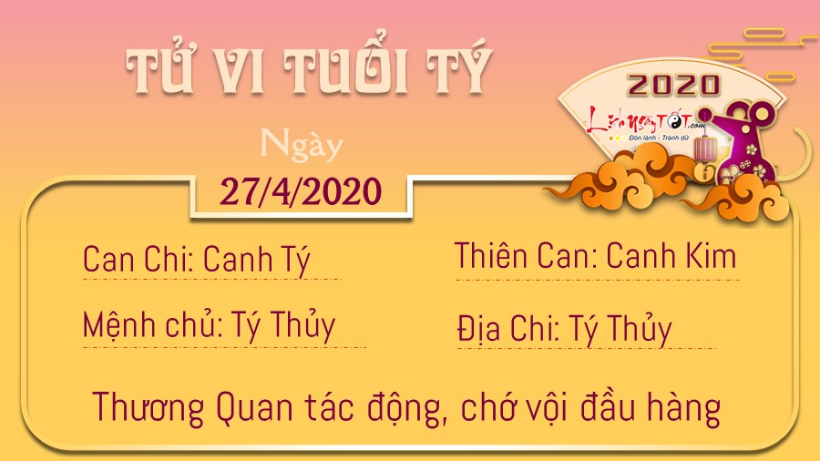 Tử vi ngày 27/04/2020 tức ngày 05/04 theo lịch âm năm Canh Tý của 12 con giáp: