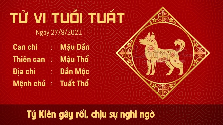Tỷ Kiên gây rối, tuổi Tuất dễ phải chịu sự nghi ngờ của mọi người. Tuy nhiên, nếu bạn không làm việc gì có trái với lương tâm, bạn không cần phải lo lắng hay bối rối, bởi rồi sự thật sẽ chứng minh ai đúng ai sai, và mọi người sẽ hiểu được con người của bạn thôi. Nếu có kế hoạch gì muốn thực hiện trong ngày hôm nay, bạn cũng nên suy tính thật kỹ càng chứ không nên hành động một cách mù quáng, thiếu lý trí. Hãy thử xin ý kiến của những người đi trước xem sao, bạn sẽ có nước đi đúng đắn hơn. Mộc khắc Thổ báo hiệu một cuộc tranh cãi nảy lửa có thể xảy ra giữa bản mệnh và nửa kia. Dù có nóng nảy đến mấy thì cũng hãy đặt mình vào vị trí của người ấy, biết đâu bạn sẽ nhận ra mình cũng có lỗi sai.