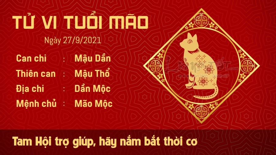 Nhờ Tam Hội trợ giúp, người tuổi Mão có 1 ngày làm việc vô cùng thuận lợi. Thần may mắn là dấu hiệu nhắc nhở bạn hãy bắt tay thực hiện ngay những kế hoạch đang ấp ủ từ trước. Bạn chớ chần chừ, do dự để lỡ thời cơ hiếm có này. Ngoài ra, các mối quan hệ thân quen có thể giúp bản mệnh gặp được quý nhân. Nhờ có quý nhân chỉ đường dẫn lối, bạn sẽ nhanh chóng tìm ra cách khắc phục những khó khăn ở hiện tại, đồng thời tìm ra định hướng thích hợp cho tương lai. Tuy nhiên, dù có tinh thần làm việc hăng say đến mấy, bạn cũng nên chú ý đến sức khỏe, không nên cố gắng quá sức đến nỗi quên ăn quên ngủ.