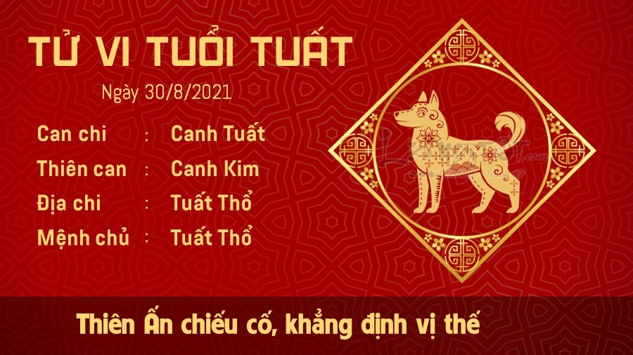 Thiên Ấn chiếu cố, người tuổi Tuất có thể khẳng định được vị thế của mình trong cách ngành nghệ thuật, khoa học, dịch vụ… Bạn có thể nhận được sự khâm phục của đồng nghiệp và sự đánh giá cao của những người có địa vị cao. Hãy chủ động và sáng tạo hơn để có thể mở những hướng phát triển khác biệt so với mọi người. Tuy nhiên, dù làm trên lĩnh vực nào đi nữa, bạn vẫn cần phải nhớ khác biệt khác với tách biệt, bạn nên hòa đồng với mọi người hơn, chớ nhốt mình trong thế giới riêng. Hôm nay trực Mãn là ngày thích hợp để cầu tài, cầu phúc, tế tự. Do đó, bạn nên sắp xếp thực hiện công việc phù hợp vào ngày hôm nay để có cát tinh phù trợ, gặp nhiều may mắn.