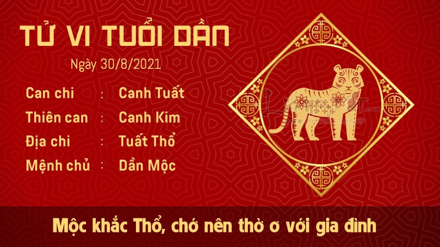 Mộc khắc Thổ khuyên tuổi Dần cần phải dành nhiều thời gian bên gia đình hơn. Công việc quá bận rộn khiến bạn trở nên thờ ơ với những người luôn chờ đợi mình ở nhà. Bạn tưởng rằng mình đang cố gắng giúp mọi người có một cuộc sống dư dả hơn, song bạn lại không nhận ra rằng tình cảm giữa các thành viên dần trở nên lạnh nhạt. Ở môi trường làm việc, bản mệnh khó được lòng người khác bởi cái tính cao ngạo và cố chấp, thích làm theo ý mình. Hãy khiêm tốn lắng nghe ý kiến của mọi người, có thể bạn sẽ tìm thấy những ý kiến hay giúp giải quyết vấn đề còn tồn đọng. Nếu có việc cần xuất hành, hãy đi theo những hướng Tây Bắc để gặp Hỷ thần hoặc hướng Tây Nam để gặp Tài thần.