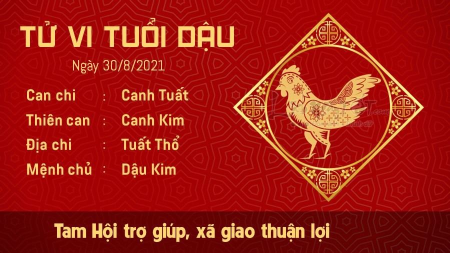 Tam Hội trợ giúp nên tuổi Dậu gặp nhiều điều thuận lợi khi phát triển các mối quan hệ xã hội. Nếu may mắn, bạn có thể tìm được người đồng chí hướng trong ngày hôm nay và đôi bên có thể hợp sức cùng phát triển. Công việc của người làm công ăn lương có những chuyển biến tích cực. Bạn không ngại ngần nhận những trách nhiệm khó khăn ngay cả khi mọi người xung quanh đều chối từ, thoái thác. Lãnh đạo hẳn đang đánh giá bạn rất cao và cân nhắc cho bạn cơ hội thăng quan tiến chức. Thổ sinh Kim, bản mệnh luôn rất tự hào về gia đình mình bởi các thành viên luôn thấu hiểu nhau. Để có thể được như vậy, gia đình bạn đã thường xuyên tâm sự với nhau, kể cả trong những chuyện khó giãi bày nhất.