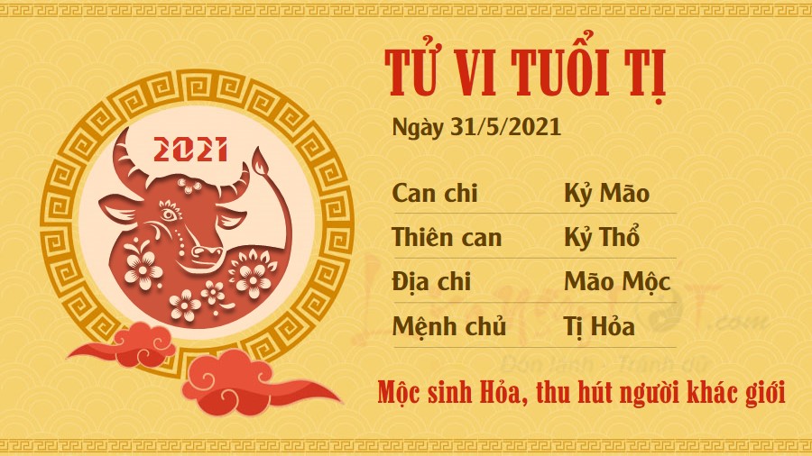 Mộc sinh Hỏa, chuyện tình cảm của người tuổi Tị tiến triển rất yên bình và ổn định. Bạn tin tưởng nửa kia và luôn có thể chia sẻ mọi suy nghĩ trong lòng mình với người đó, nhờ đó 2 người có thể kề vai sát cánh trong mọi chuyện. Những người còn độc thân cũng dần cởi mở hơn khi giao tiếp với người khác giới. Nếu có ai đó bày tỏ thiện cảm với bạn, bạn nên cho người ấy cơ hội để đến gần với mình hơn, đừng nên tiếp tục ở trong thế giới riêng nữa. Chính Ấn soi rọi tạo ra nhiều tín hiệu tích cực trong sự nghiệp của bản mệnh. Nhờ tinh thần làm việc trách nhiệm, có đầu có đuôi, bạn được cấp trên công nhận và tin tưởng giao cho nhiều công việc khó khăn, tạo điều kiện để bạn khẳng định bản thân.