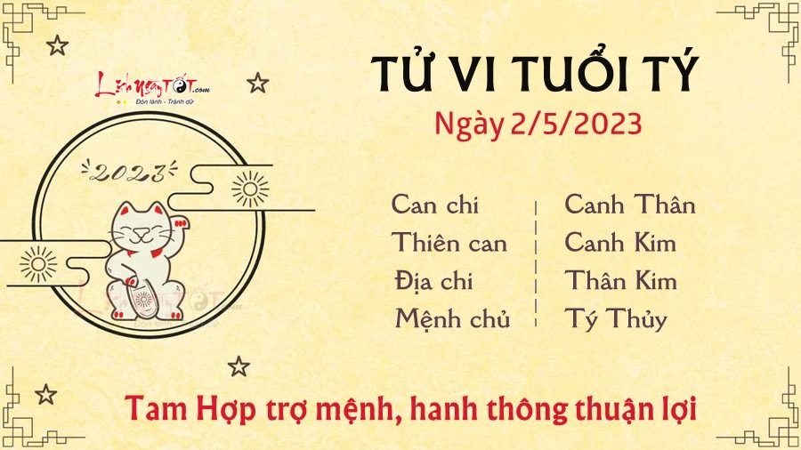 Tam Hợp cục mang đến cho tuổi Tý một ngày hanh thông và thuận lợi, mọi việc bạn làm đều đem lại kết quả tốt. Những người có công việc phải hoàn thành trong hôm nay gần như sẽ không gặp bất cứ khó khăn nào. Còn những ai vẫn đang trong dịp nghỉ lễ thì hoàn toàn có thể tận hưởng ngày nghỉ theo cách mình muốn. Với khả năng kiếm tiền của mình, nguồn thu nhập hiện tại của Tý không gặp bất cứ khó khăn nào, tiền bạc hanh thông tha hồ chi tiêu. Dù vậy bạn vẫn cần phải có kế hoạch cụ thể và còn tính chuyện tiết kiệm dành tiền cho việc đầu tư vốn làm ăn sau này. Chuyện tình cảm trong ngày Tam Hợp cũng đem tới cho bạn sự yên tâm. Tình cảm lứa đôi, vợ chồng, bạn bè, gia đình đều rất suôn sẻ. Ngày nghỉ lễ nên trân trọng khoảng thời gian bên gia đình, hạn chế bia rượu ảnh hưởng sức khỏe nhé. Với riêng những ai đang mới bắt đầu một mối quan hệ, bạn và người ấy đang ổn định tình cảm của mình. Nếu thực sự xác định đây là mối quan hệ nghiêm túc thì nên cố gắng vun đắp cho nó nhé.
