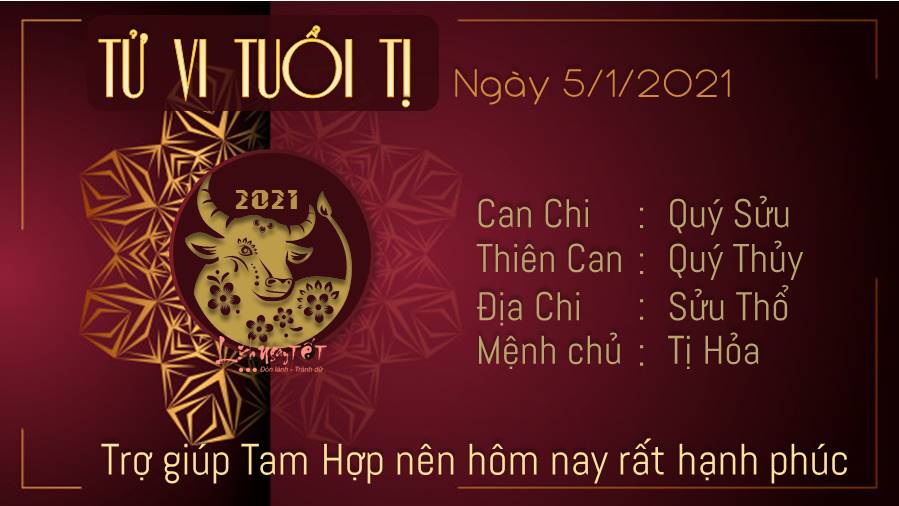 Trước khi học cách yêu bản thân, người tuổi Tị cần phải hiểu rõ ý nghĩa của việc này vì có thể việc bạn tìm hiểu về chính mình quan trọng với bạn trong ngày hôm nay. Nhờ đó mà bạn mang tới niềm vui cho cả mối quan hệ hiện tại, và thêm sự trợ giúp của Tam Hợp nên hôm nay của bạn rất hạnh phúc. Chính Tài chính là ngôi sao may mắn của con giáp tuổi Tị giúp bạn có quyết định khôn ngoan về tiền bạc. Thậm chí nếu ai gặp khó khăn cũng ngay lập tức nhận được sự hỗ trợ về tiền vượt qua hoàn cảnh hiện tại. Thổ - Hỏa tương sinh cho thấy sức khỏe của bạn rất đáng ghen tị, thời gian này bạn tập trung vào các thói quen lành mạnh hơn trước đây rất nhiều.