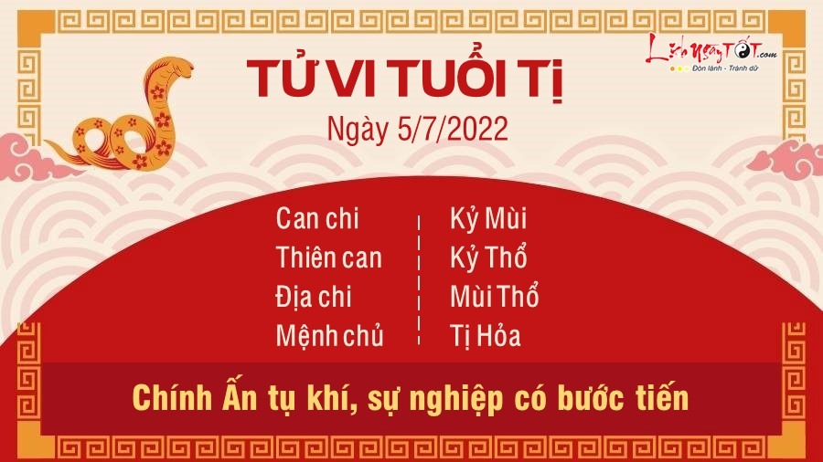 Chính Ấn mang tới cho tuổi Tị cơ hội để tạo ra những bước tiến sự nghiệp nhất định. Bạn vốn là người mạnh mẽ, có sự nhạy bén và thích nghi linh hoạt nên tại cơ quan rất được trọng dụng. Cấp trên hiếm khi phải lo lắng khi giao việc cho con giáp này. Song, bản thân tuổi Tị vẫn nên tiết chế bớt sự ngang ngạnh ương bướng thì sự nghiệp sẽ còn tiến xa hơn nữa, thậm chí còn vươn lên nắm giữ chức vụ cao trong tổ chức. Bạn có năng lực nhưng đôi khi thể hiện hơi quá, nếu không sớm sửa đổi sẽ rất dễ đắc tội người khác. Hỏa sinh Thổ hậu thuẫn cho tình yêu đôi lứa. Các cặp đôi dù yêu xa cũng luôn biết cách chăm sóc tình yêu của mình. Hai người hiểu và chia sẻ với nhau mọi điều trong cuộc sống, khoảng cách địa lý có thể tồn tại nhưng khoảng cách về hai trái tim thì hoàn toàn không có.