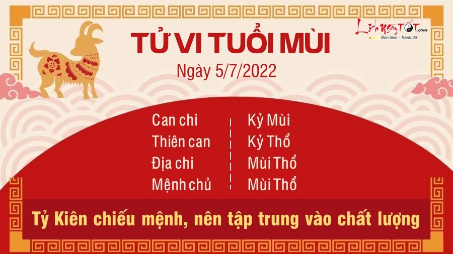 Tỷ Kiên chiếu mệnh, tuổi Mùi được nhắc nhở nên tập trung vào chất lượng công việc hơn là cứ mải mê chạy theo số lượng. Làm được nhiều nhưng chất lượng không ra gì thì hiệu quả vẫn chẳng có cải thiện là bao, đã vậy bạn còn có thể tốn nhiều công sức và thời gian để khắc phục những sai sót nửa chừng. Bạn cũng có thể nhờ tới sự giúp đỡ của đồng nghiệp, đừng vì ngại mà không dám chia sẻ công việc. Tình trạng quá tải công việc bao giờ cũng mang lại mệt mỏi. Vì thế cần biết phân phối công việc, chia sẻ cho các đồng nghiệp cùng giải quyết. Về tình cảm, vợ chồng bất hòa khiến cho không khí gia đình chùng xuống. Công việc bận rộn ngày càng đẩy hai bạn ra xa nhau dù cả hai vẫn ở bên nhau. Mối quan hệ thiếu có sự giao tiếp tình cảm, mượn cớ công việc để không phải đối mặt với nhau thì sớm muộn gì cũng đổ vỡ.