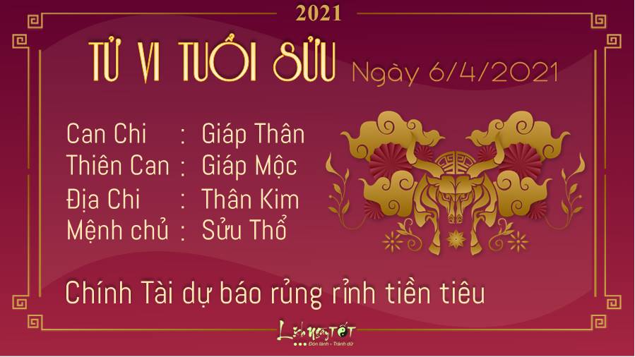 Chính Tài dự báo tuổi Sửu rủng rỉnh tiền tiêu vì bản mệnh vừa nhận được lương, thưởng. Lúc này bạn có thể trả nợ hoặc mua món đồ mà mình thích từ lâu, thế nhưng đừng quên dành một phần tiết kiệm trước khi nghĩ tới việc chi tiêu bạn nhé. Kim - Thổ tương sinh dự báo một ngày bùng nổ với nguồn năng lượng mạnh mẽ. Đừng bỏ lỡ cơ hội chinh phục những người đang quan sát bạn bằng những hành động táo bạo, tự tin. Hẳn nhiên chúng ta ai cũng có những nỗi lo và băn khoăn riêng, nhưng đây không phải lúc để bước lùi. Hôm nay nếu bản mệnh đi đâu nên ưu tiên hướng Hỷ thần: Hướng Đông Bắc, hoặc hướng Tài thần: Hướng Đông Nam, hạn chế chọn hướng Hắc thần: Hướng Tây Bắc.