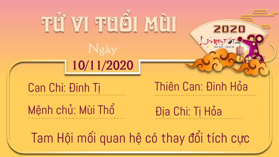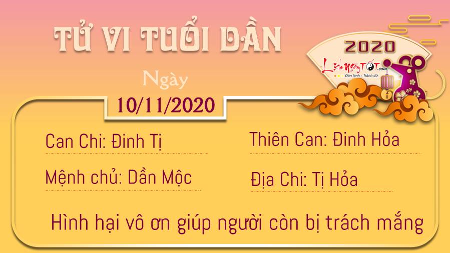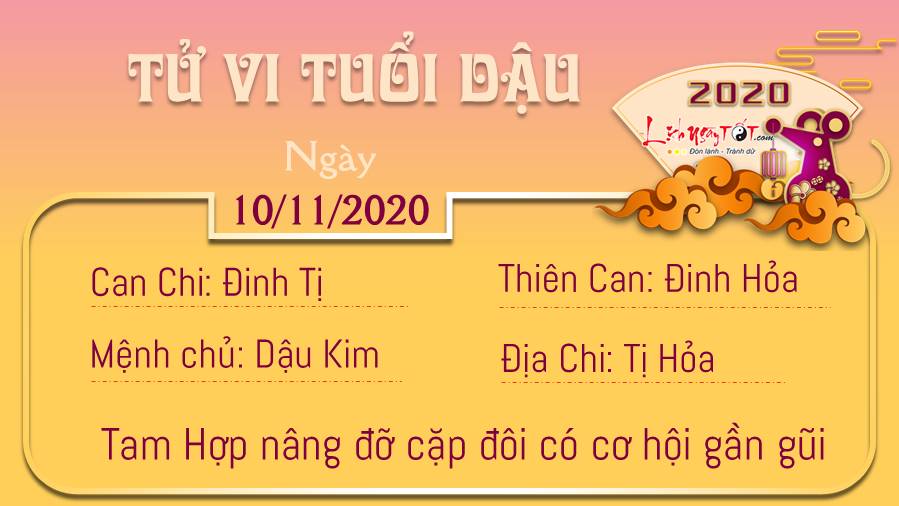 Thiên Ấn giúp cho người tuổi Mão linh hoạt, nhanh nhạy hơn trong việc xử lý các vấn đề diễn ra trong ngày hôm nay. Có thể những sáng kiến của bạn có thể giúp thay đổi cả toàn bộ sự việc, giúp cho bạn sớm hoàn thành nhiệm vụ được giao hơn bao giờ hết. Ngũ hành tương sinh có thể là cơ hội chấp cánh cho tình yêu của những ai đang độc thân. Những buổi đầu hẹn hò lãng mạn sẽ mang lại cho bạn nhiều niềm vui và hi vọng. Người có đôi có cặp sẽ có nhiều cơ hội gia tăng tình cảm thông qua cuộc gặp gỡ bạn bè, đi dã ngoại cùng nhau. Ngày 10/11/2020 là ngày Ngày Dương công kỵ được xem là ngày xấu đối với khởi tạo; an táng; khởi công động thổ; xuất hành.