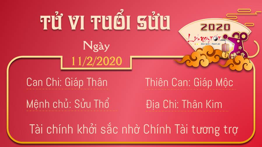 Tình hình tài chính của con giáp tuổi Sửu càng thêm khởi sắc nhờ sự tương trợ của Chính Tài. Thế nhưng, đừng chỉ tính toán đến những giải pháp tức thời mà không có biện pháp lâu dài, nếu không hiện tại có thể vui đấy nhưng về sau bạn sẽ càng mệt mỏi. Tuy nhiên lời khuyên cho bạn là hãy thận trọng trong từng bước đi, nhằm tránh những sai sót, vấp váp có thể khiến cho bạn phải hối tiếc sau này. Luôn có cái nhìn toàn cục nhưng cũng đừng quên việc thực hiện chi tiết để xem mình có đi đúng hướng hay không, chớ nên xem nhẹ bất cứ việc gì cả. Thổ - Kim tương sinh mang lại niềm tin và hi vọng trong chuyện tình cảm của nhiều người.
