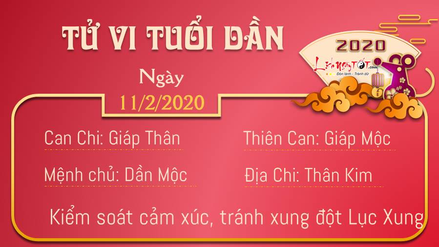 Lục Xung nhắc nhở con giáp tuổi Dần nên kiểm soát cảm xúc để tránh xung đột, ý kiến đúng hay sai không quan trọng bằng cách bạn hành xử, đối nhân xử thế trong những tình huống khá khó chịu. Một chút khéo léo trong lời ăn, tiếng nói rất quan trọng trong ngày hôm nay đối với bản mệnh. Ảnh hưởng của Tỷ Kiên khiến con giáp tuổi Dần thường xuyên có cảm giác không bằng lòng. Sự không sẵn sàng để đầu hàng khi đứng trước những thử thách sẽ đem lại cho bạn cơ hội để tìm ra một con đường mới thích hợp cho mình trong ngày hôm nay. Nhị thập bát tú khuyên rằng bản mệnh nên kiêng cữ những việc như chôn cất, cưới gả, xây cất nhà, trổ cửa gắn cửa, các việc thủy lợi... trong ngày hôm nay.