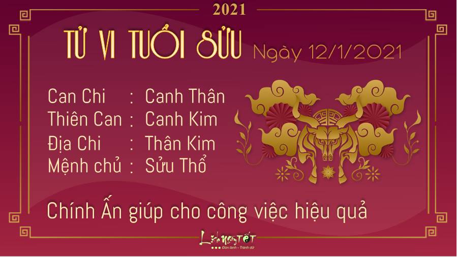 Chính Ấn giúp cho công việc của con giáp tuổi Sửu hiệu quả hơn. Trong thực tế, điều quan trọng nhất lúc này chính là có thể đạt được điều mà bản thân mong muốn mà không phải tốn quá nhiều nguồn lực, và bạn hoàn toàn kiểm soát được tình hình. Kim - Thổ tương sinh cho thấy người tuổi Sửu khá hòa hợp với nửa kia của mình, thậm chí mỗi lần mâu thuẫn cũng là một lần đôi bên thêm thấu hiểu về nhau. Càng hiểu người ấy, bạn lại càng trân trọng mối quan hệ hiện tại hơn. Nhị thập bát tú khuyên bản mệnh hôm nay nên kiêng cữ những việc như: chôn cất, cưới gả, xây cất nhà, trổ cửa gắn cửa, các việc thủy lợi.