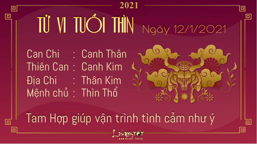 Tam Hợp mang tới vận trình tình cảm như ý cho tuổi Thìn, mối quan hệ của bản mệnh với người thân cũng có những thay đổi tích cực. Một số người độc thân khéo ăn nói và được nhiều người khác giới quý mến trong những lần đầu gặp gỡ. Thiên Ấn chiếu mệnh khẳng định những cố gắng từ trước đến nay của người tuổi Thìn chẳng hề uổng phí chút nào. Bạn có thể đạt được sự tôn trọng, ngưỡng mộ của mọi người xung quanh và có cơ hội thăng quan tiến chức. Kim - Thổ tương sinh cho thấy lúc này được xem là thời điểm tốt để chào đón giai đoạn mới với những suy nghĩ mới mẻ, những ý tưởng táo bạo hơn.