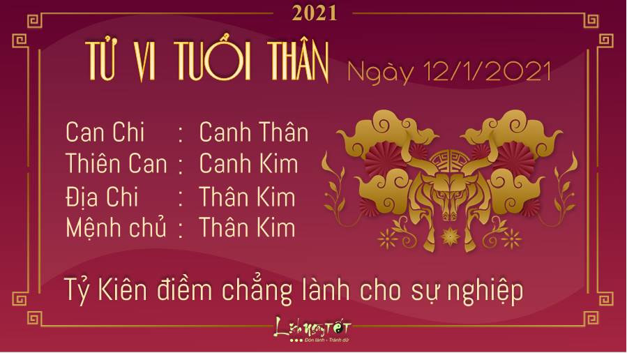 Tỷ Kiên đem tới điềm chẳng lành cho sự nghiệp của người tuổi Thân. Bạn quá cứng đầu, không chịu hòa nhập với tập thể nên dễ bị mọi người xa lánh, cô lập, khiến làm việc gì cũng khó khăn. Kim khí vượng không tốt cho những mệnh chủ đang có bệnh nền, bạn nên dành nhiều thời gian hơn cho việc nghỉ ngơi, đừng vì ham vui mà đi lại quá nhiều. Ngoài ra đừng quên uống thuốc đúng giờ bạn nhé, bạn có thể vận động thường xuyên bằng những động tác nhẹ nhàng. Hôm nay đi đâu bản mệnh nên ưu tiên hướng hỷ thần: Hướng Tây Bắc, hoặc hướng Tài thần: Hướng Tây Nam, hạn chế chọn hướng Hắc thần: Hướng Đông Nam.