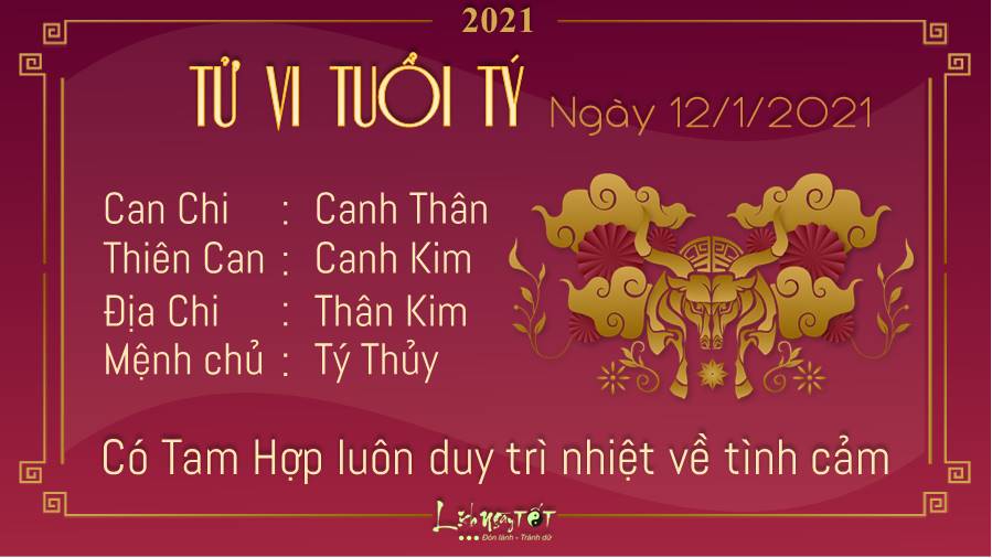 Tam Hợp giúp tuổi Tý luôn duy trì được sự nhiệt tình trong mối quan hệ tình cảm hiện tại. Hứa hẹn nhiều người độc thân sẽ tìm được một nửa như ý cho mình trong ngày này. Thương Quan không tốt cho vận trình công việc của bạn, cho dù bạn đã nỗ lực hết mình nhưng không phải khi nào mọi thứ đều diễn ra theo ý bạn muộn. Đừng buồn vì vẫn có người ghi nhận công sức và đợi bạn một ngày nào đó sẽ tỏa sáng đấy. Ngũ hành tương sinh giúp cho bản mệnh có cơ hội cải thiện sức khỏe, nhất là những ai quyết tâm có được thân hình đẹp thì bạn đang có những bước đi rất thành công, bạn nên duy trì thói quen này càng lâu càng tốt bạn nhé.