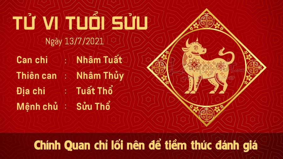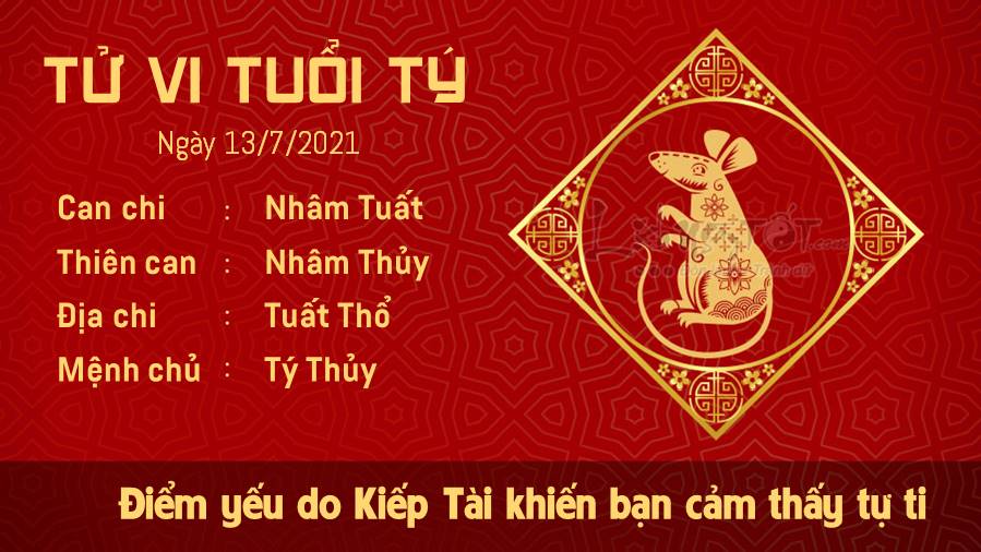 Kiếp Tài khiến tuổi Tý cảm thấy tự ti và muốn sống khép mình. Thế nhưng, lời khuyên cho bạn trong ngày này đó là dù buồn hay vui, hãy nỗ lực để chia sẻ những cảm xúc thật của mình và kết nối với mọi người xung quanh nhiều hơn. Nhờ thế, tâm trạng của bạn cũng khá hơn đấy. Thổ - Thủy xung khắc khuyên bản mệnh hãy dành ngày hôm nay để chăm sóc cho bản thân mình nhiều hơn nhé. Tắt điện thoại đi, cho bạn thời gian để nghỉ ngơi, lắng nghe những cảm xúc nội tâm, điều đó rất quan trọng. Ngày 13/7/2021 là ngày ngày Sát chủ, theo quan niệm dân gian, ngày này thuộc Bách kỵ, trăm sự đều kỵ, không nên làm các việc trọng đại, bất kể đối với tuổi nào.