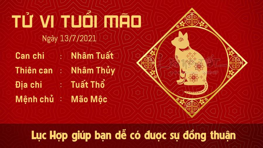 Lục Hợp xuất hiện giúp cho người tuổi Mão rất dễ có được sự đồng thuận với đồng nghiệp hoặc người thân. Nhờ đó mà bạn quyết định dễ và nhanh hơn, mọi thứ vì thế mà được sắp xếp lại một cách gọn gàng, thuận lợi hơn cho bạn. Tuổi Mão hãy giải quyết mọi vấn đề về tiền bạc, nợ nần, nếu bạn muốn đầu óc thanh thản ngày hôm nay. Ảnh hưởng của Thương Quan sẽ gia tăng những rắc rối cho bạn nếu không cẩn trọng. Ngũ hành xung khắc cho thấy các cặp đôi dễ có bất đồng cũng chỉ vì không hiểu ý nhau, nếu bạn là người nhanh hiểu thì nên kiên nhẫn hơn một chút để chờ người ấy, nếu bạn là người chậm thì cố gắng đẩy nhanh tốc độ thêm chút nữa để người khác đỡ bực mình nhé.