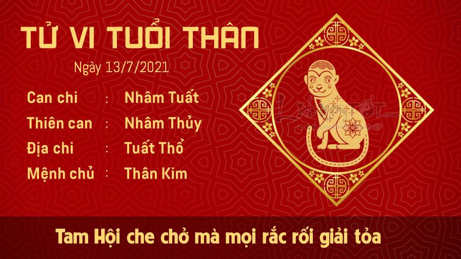 Tam Hội che chở mà hôm nay mọi vấn đề rắc rối nơi gia đình của tuổi Thân sẽ tự đi vào quỹ đạo quen thuộc, giúp cho bạn có một ngày tinh thần được giải tỏa. Hãy tập trung vào những cảm xúc tích cực của đời sống, đừng thờ ơ với những người yêu thương. Cuộc thảo luận sôi nổi và nghiêm túc về những giá trị sẽ khiến cho con giáp tuổi Thân suy nghĩ một lần nữa về mọi việc. Có vẻ như ảnh hưởng của Thiên Ấn khiến bạn có nhiều ý tưởng nhưng cũng có thể khiến bạn trở nên thiếu quyết đoán và có một chút bối rối khi đứng trước một quyết định nào đó. Thổ - Kim tương sinh giải tỏa hết những áp lực, căng thẳng cho bản mệnh, nhờ đó mà sức khỏe cũng được cải thiện.