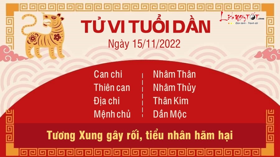 Thân Dần Tương Xung, người tuổi Dần được nhắc nhở cần phải đề phòng bởi vận trình của bạn dễ có tiểu nhân hãm hại. Bạn nên cẩn thận lời ăn tiếng nói tránh vạ miệng thị phi. Dù bạn không có ác ý nhưng những kẻ ghen ghét sẽ cố tình bóp méo sự thật để gây bất lợi cho bạn. Ngày này tốt nhất hãy nói ít, làm nhiều. Tài chính trong ngày không mấy khả quan nên tốt nhất bạn nên hạn chế những khoản chi không cần thiết vào lúc này. Duy trì tài khí ở mức ổn định sẽ là lựa chọn khôn ngoan nhất vào lúc này. Đừng vội tin những lời ngon tiếng ngọt, dụ dỗ mà nghĩ rằng kiếm tiền dễ dàng, chẳng cần tốn chút công sức nào. Ngày ngũ hành xung khắc, đường tình duyên của Dần cũng rất ảm đạm. Dường như bạn đang có xu hướng yêu cầu quá nhiều thứ ở người yêu của mình. Họ có thể sẽ nuông chiều cảm xúc của bạn một vài lần nhưng nếu cứ liên tục đòi hỏi sẽ có thể dẫn tới những điều đáng tiếc.