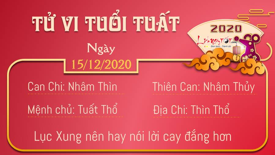 Lục Xung khiến tuổi Tuất tiêu cực hơn, việc bạn nói ra những lời cay đắng và khiến cho đối phương bỏ đi, việc này không giúp giải quyết vấn đề, trái lại chỉ khiến cho bạn mệt mà thôi. Khi không nói được lời khen ngợi, hãy cố gắng chọn sự im lặng cần thiết. Thiên Quan khiến con giáp tuổi Tuất buồn phiền vì những rắc rối đang vướng phải. Thay vì chỉ biết sống cho hiện tại, nên hướng đến một cái nhìn rộng mở hơn về tương lai, từ đó biết mình cần phải làm gì. Cuộc sống đâu chỉ là sống cho những ngày trước mắt, phải không nào. Thổ khí vượng khuyên bản mệnh lúc này nên dành nhiều thời gian hơn cho việc nghỉ ngơi, đừng để những căng thẳng khiến bạn mệt mỏi thêm nữa.