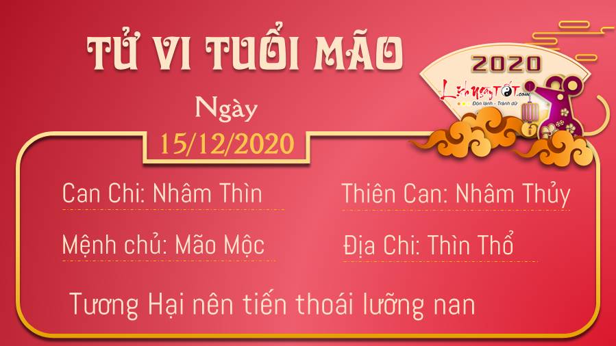Mão Thìn Tương Hại nên tuổi Mão cảm thấy như thể mình bị rơi vào tình thế tiến thoái lưỡng nan ngày hôm nay, khi không biết phải lựa chọn gì cho phù hợp. Dường như bạn gặp khó khăn trong việc đưa ra quyết định của riêng mình trong tình thế hiện tại. Thương Quan dự báo kết quả thi cử của bạn không tốt, đừng đổ lỗi cho số phận người tuổi Mão nhé, bạn cần phải học hành chăm chỉ hơn. Hôm nay sẽ là một ngày không dễ chịu, có thể lý do xuất phát từ những mâu thuẫn trong gia đình. Dường như việc không tìm thấy tiếng nói chung giữa mọi người có thể khiến cho bạn vào một ai đó rơi vào hiểu nhầm, làm mối quan hệ trở nên căng thẳng đấy.