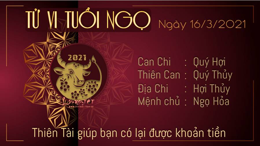 16/03/2021 13:00Tử vi thứ 3 ngày 16/03/2021 của 12 con giáp: Ngọ có tiền, Hợi lo lắng