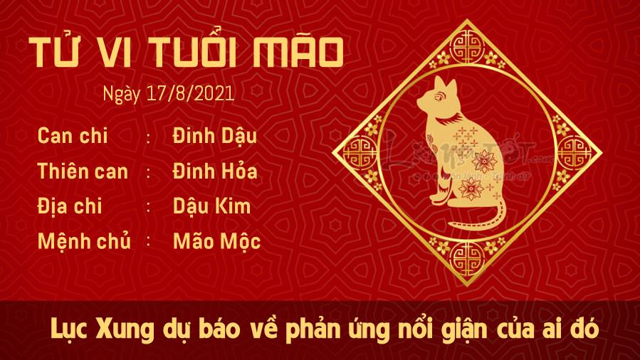 Lục Xung dự báo về phản ứng nổi giận của ai đó mà con giáp tuổi Mão không mong chờ cho lắm. Bạn phải hiểu rằng, chẳng còn gì tệ hơn việc bắt ai đó làm việc mà họ không thích. Thiên Ấn khuyến khích con giáp tuổi Mão nhìn nhận những ý tưởng mới, học hỏi từ những khía cạnh khác mà mọi người chia sẻ. Đừng bảo vệ cái tôi của mình và trở nên ích kỷ với họ như cách bạn vẫn làm trước đây nhé. Ngũ hành xung khắc cho thấy những thao thức của bản mệnh trong ngày hôm nay có thể liên quan tới chuyện tiền bạc. Bạn đừng để sự thất vọng làm lu mờ lý trí, hãy bình tĩnh để tìm ra cách đối phó phù hợp nhé.