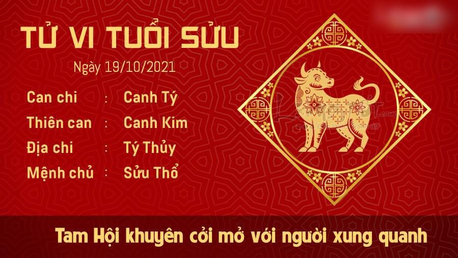 Tam Hội xuất hiện hôm nay cho thấy một trong những thử thách của tuổi Sửu chính là bạn cần phải bước ra khỏi vòng tròn an toàn của mình và trở nên cởi mở hơn với những người xung quanh. Đây chính là cơ hội để bạn trở nên tự tin hơn và mở rộng các mối quan hệ của mình. Chính Ấn mang lại kết quả đáng kể cho tuổi Sửu để họ tự hào về bản thân sau những nỗ lực không ngừng thời gian qua. Bạn nhận ra rằng chỉ cần làm tốt những việc nhỏ thì việc lớn cũng vì thế mà trở nên thuận lợi hơn. Thủy Thổ xung khắc cho thấy sức khỏe của bạn không được tốt, hay bị ốm vặt, đau đầu, chóng mặt. Bạn cũng nên quan tâm nhiều hơn đến sức khỏe của người thân trong gia đình vì có thể có người bị bệnh nặng.