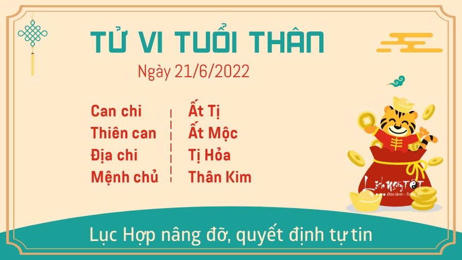 Tuổi Thân nhờ Lục Hợp tương trợ nên khá tự tin khi đưa ra những quyết định quan trọng trong công việc. Nhìn chung vận trình sự nghiệp của con giáp này không có nhiều biến động, các vấn đề tồn đọng trước đây cũng được bản mệnh xử lý gọn gàng đâu vào đó. Ngày này bạn còn xây dựng được những mối quan hệ xã giao tốt đẹp. Dù là quá trình làm việc chung với đồng nghiệp hay hợp tác làm ăn đều đem lại cho bạn nhiều sự thuận lợi. Quý nhân cũng có thể xuất hiện ngay trong ngày để mở đường cho bạn thăng tiến. Tuy nhiên, Hỏa – Kim xung khắc, vận trình tình duyên chẳng được như ý muốn, sóng gió liên tiếp ập tới đe dọa mối quan hệ của con giáp này. Bản mệnh và người ấy có quá nhiều vấn đề khúc mắc lại không biết cách chia sẻ nên đành im lặng, cuối cùng khiến tình cảm rơi vào bế tắc.