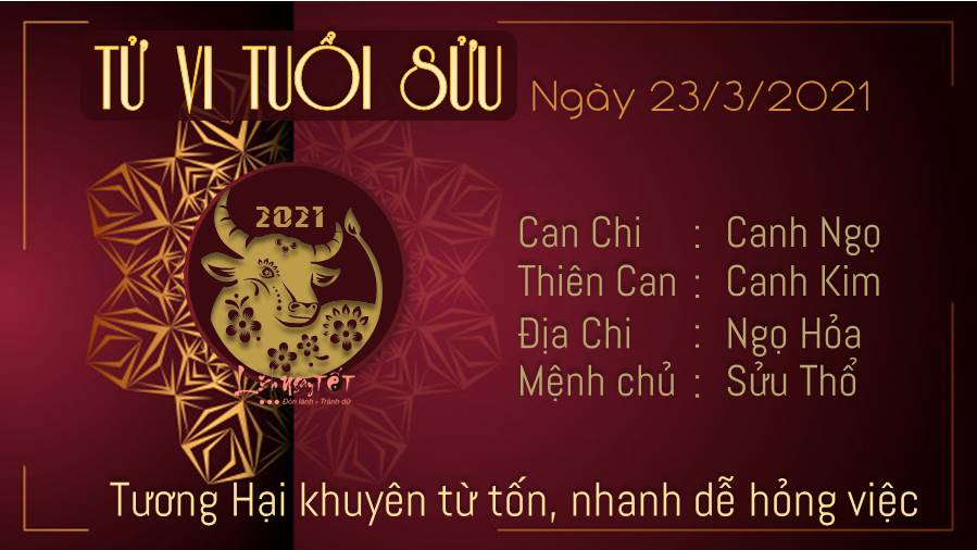 Sửu Ngọ Tương Hại khuyên con giáp tuổi Sửu phải từ tốn, càng nhanh càng hỏng việc, sự hài lòng bị trì hoãn lại khiến bạn thỏa mãn hơn sự hài lòng tức thì. Thế nên đừng vồ vập, đừng quá hấp tấp, sự chậm rãi sẽ khiến bạn cảm nhận mọi thứ ý nghĩa hơn rất nhiều đấy. Chính Ấn có thể giúp tuổi Sửu có ý tưởng đột phá trong ngày này, thế nhưng muốn biến ước mơ thành hiện thực thì điều duy nhất bạn phải làm là nỗ lực theo đuổi nó. Ngũ hành xung khắc khiến tâm tính của bản mệnh không được ổn định, bạn đang áp đặt suy nghĩ của mình lên đối phương và khiến cho mối quan hệ trở nên ngột ngạt, căng thẳng.