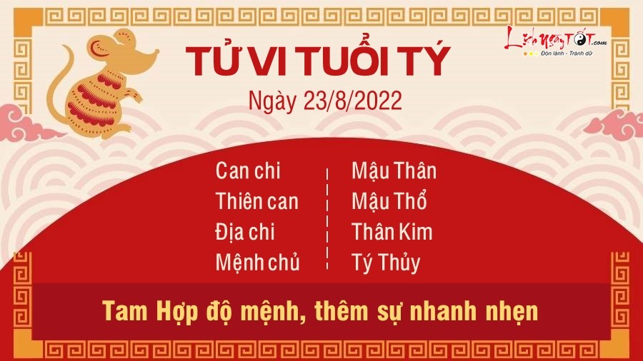 Tam Hợp cục mang tới cho tuổi Tý sự nhanh nhẹn để sớm hoàn thành các nhiệm vụ trước mắt, giải quyết kha khá vấn đề tồn đọng khiến bạn đau đầu bấy lâu. Chất lượng công việc được nâng cao cũng khiến tinh thần bạn rất phấn chấn. Tử vi hôm nay cũng khuyên bạn nên kiên định với ý kiến của mình hơn trong công việc, đừng để người khác chi phối quá nhiều chỉ vì muốn giữ sự dĩ hòa vi quý. Bạn có cách suy nghĩ vấn đề của riêng mình và hãy mạnh dạn trình bày điều đó để chứng tỏ bản thân nhiều hơn. Về mặt tình cảm, Kim sinh Thủy nên mối quan hệ giữa bạn và nửa kia vẫn đang rất tốt đẹp. Bạn nên biết khen ngợi đối phương đúng lúc, đừng tiếc gửi những lời có cánh tới người mà mình yêu thương. Lời khen là liều thuốc tinh thần vô cùng hữu hiệu đấy.