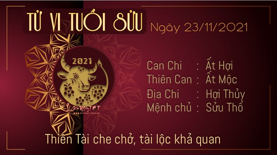 Người tuổi Sửu may mắn được Thiên Tài chiếu mệnh nên vận trình tiền bạc được đánh giá vô cùng khả quan. Người làm ăn kinh doanh kiếm được bộn tiền, đơn hàng ồ ạt khiến bạn có một ngày làm việc không ngơi nghỉ. Ngày này công việc của những chú Trâu cũng trở nên suôn sẻ và thuận lợi bất ngờ, bản mệnh dễ dàng tiến gần hơn đến với mục tiêu đã định. Cũng nhờ con giáp này có tinh thần cống hiến và phấn đấu hết mình cho công việc, được cấp trên đánh giá cao vì điều này. Thủy – Thổ xung khắc lại gây ra những nỗi buồn tình cảm cho Sửu. Giữa bạn và người ấy ngày càng xuất hiện những cuộc tranh cãi không hồi kết khiến khoảng cách cứ lớn dần. Sự thật là không ai trong cả hai chịu đứng ra là bên nhún nhường nên tình hình cứ căng thẳng như vậy.