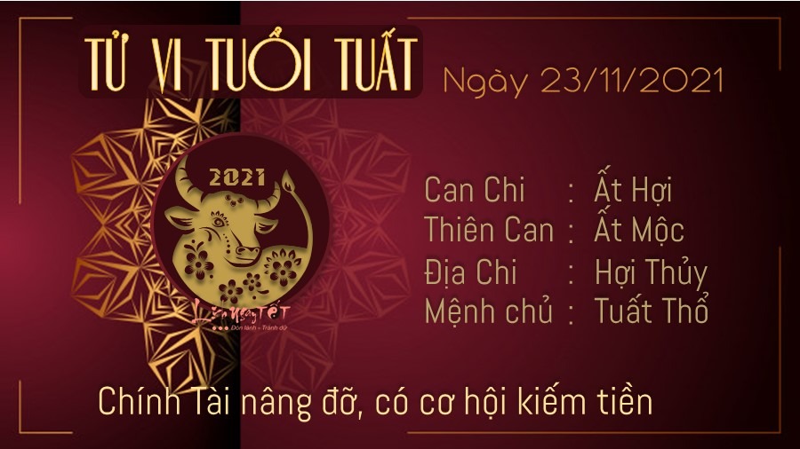 Đường tài lộc của tuổi Tuất được Chính Tài độ mệnh, nhờ thế mà khởi sắc vô cùng. Chuyện kiếm tiền không làm khó được người kinh doanh. Hôm nay bản mệnh nhìn thấy cơ hội kiếm tiền khá dễ dàng ngay trong tầm tay của mình. Dám nghĩ dám làm, bạn sẽ đạt được nhiều thành tựu với khả năng tính toán và sự nhạy bén của mình. Người làm công ăn lương dù không rủng rỉnh như người kinh doanh, song công việc suôn sẻ cũng có thể nói giúp cho thu nhập của bản mệnh tăng lên không ít. Bạn rất hài lòng với tình trạng hiện tại, bởi điều đó cũng cho thấy bạn đang đi đúng đường và làm những việc có ý nghĩa. Thủy – Thổ xung khắc gây nhiều khó khăn cho người độc thân trong việc tìm kiếm mảnh ghép phù hợp. Tuy vậy, bạn cũng chớ nên buồn phiền, dù chưa có được tình yêu thuộc về mình nhưng điều đó không có nghĩa là bây giờ tuổi này đang là người bất hạnh nhất trên đời. Vì vậy hãy cứ cố gắng hoàn thiện bản thân rồi những điều tốt đẹp sẽ tới với bạn.