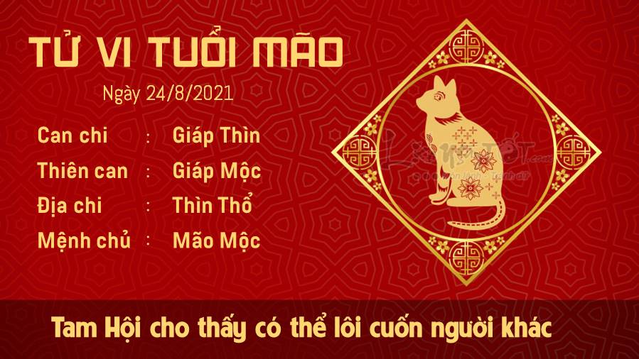 Tam Hội cho thấy hẳn nhiên người tuổi Mão có thể dễ dàng lôi cuốn một người nào đó vào cuộc trao đổi với mình, nhưng nếu bạn muốn họ dốc lòng, chia sẻ với bạn trọn vẹn mọi suy nghĩ thì đây lại là một câu chuyện khác đấy. Đừng kỳ vọng quá nhiều, hãy cứ thể hiện là bạn biết lắng nghe. Kiếp Tài không có là điều gì đáng ngại đối với con giáp tuổi Mão ngày hôm nay cả. Một chút thay đổi đầy bất ngờ trong cách ứng xử của bản mệnh sẽ khiến nhiều người phải ngạc nhiên, bởi vì họ không nghĩ là bạn như thế. Ngũ hành xung khắc ảnh hưởng tiêu cực tới sức khỏe của bản mệnh, có thể vì ít được đi ra ngoài nên bạn không được hít thở không khí trong lành mà thôi.