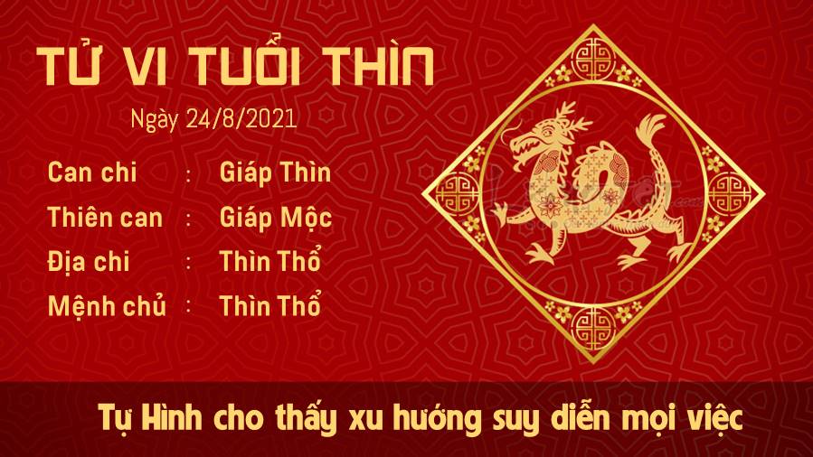 Thìn Thìn Tự Hình cho thấy người tuổi Thìn có xu hướng suy diễn mọi việc, có thể bạn đang tự ép bản thân quá. Mọi người đều cần thời gian, và bạn cũng vậy. Hãy chia sẻ những cảm xúc, suy nghĩ của mình về ngày hôm nay với mọi người, nếu nó khiến cho bạn cảm thấy bí bức, khó chịu. Chớ nên để những chi tiết nhỏ nhặt đe dọa bạn, nếu cảm thấy việc gì quá sức thì cũng không cần phải cố quá đâu nhé. Thiên Tài ghé thăm mang lại tin vui liên quan đến tiền bạc giúp con giáp tuổi Thìn bớt lo lắng, hoang mang trong lòng. Thế nhưng khi có tiền đừng vì mừng quá mà tiêu hoang phí, những ngày sau không ai đảm bảo cho bạn rằng khó khăn còn kéo dài hay kết thúc rồi đâu nhé.
