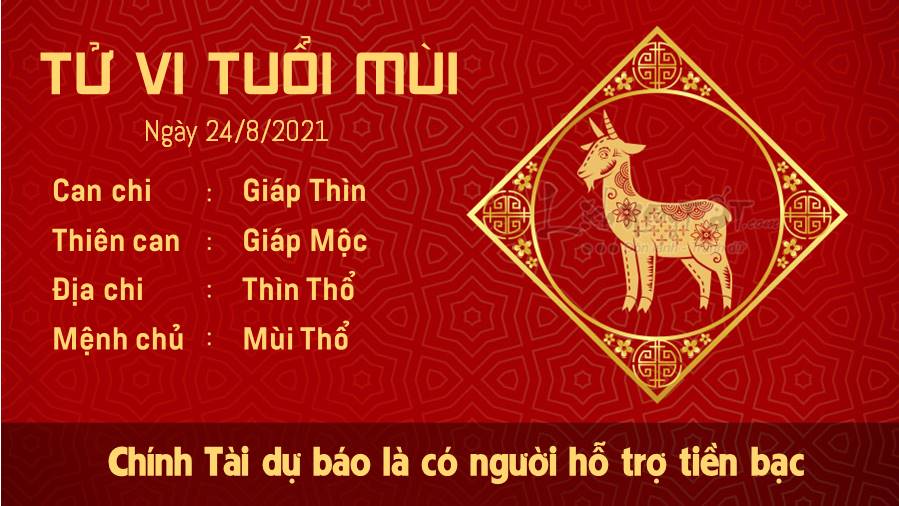 24/08/2021 13:00Tử vi thứ 3 ngày 24/08/2021 của 12 con giáp: Thân đào hoa, Mùi được cho tiền