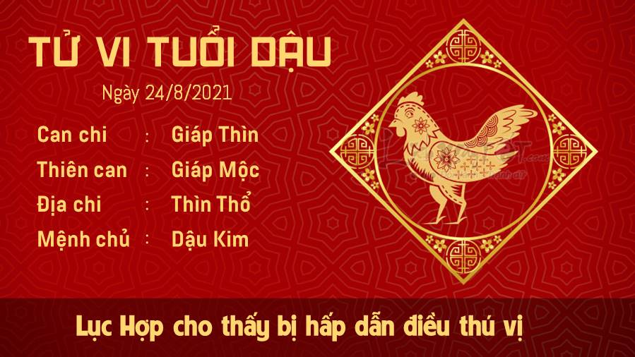 Lục Hợp cho thấy những điều hấp dẫn và đầy thú vị đang khiến tuổi Dậu bận rộn, vui vẻ mỗi ngày. Chính Quan xuất hiện dự báo công việc đã bắt đầu vào guồng quay quen thuộc đối với con giáp tuổi Dậu. Hãy tìm những người cộng sự sẵn sàng để hành động cùng với bạn, thay vì chỉ nói suông. Nếu bạn muốn công việc của ngày hôm nay hiệu quả thì điều quan trọng nhất chính là tìm được đối tác phù hợp đấy. Ngũ hành tương sinh cho thấy sức khỏe cải thiện, bạn cũng suy nghĩ lạc quan hơn trong các vấn đề xảy ra với mình trong ngày hôm nay, nhờ thế mà dù có chuyện gì cũng từ từ gỡ rối. Thậm chí vấn đề tiền bạc cũng được bạn giải quyết ổn thỏa.