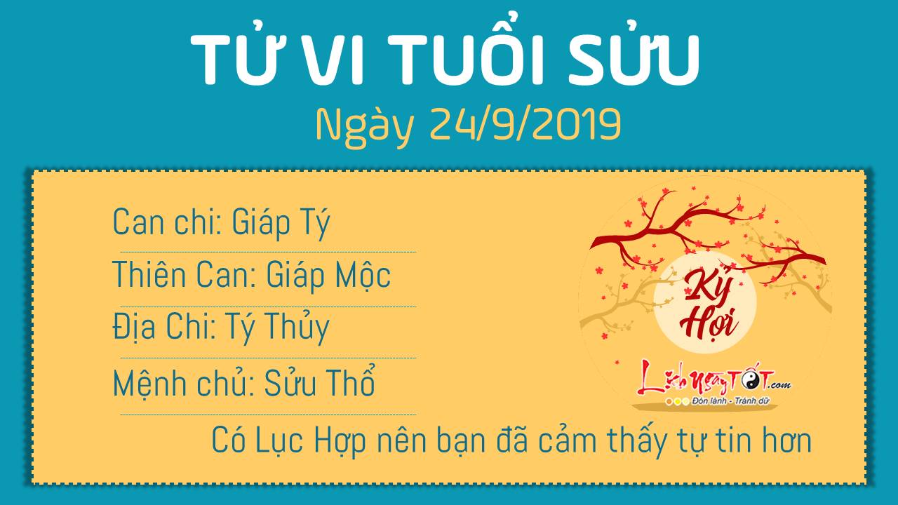 Hôm nay, nhờ có sự giúp sức của Lục Hợp mà người tuổi Sửu cảm thấy tự tin hơn trong việc kết nối các mối quan hệ, các cơ hội mới. Chính Tài cho thấy tình hình tài chính của người tuổi Sửu lúc này khá ổn định, khoản thu và chi khá cân đối. Việc này là nhờ một quá trình dài bạn duy trì cách chi tiêu phù hợp và không quên tiết kiệm tiền, để dành một phần nhỏ phòng lúc khó khăn. Thủy - Thổ xung khắc cho thấy bạn e ngại mở lòng trong chuyện tình cảm.