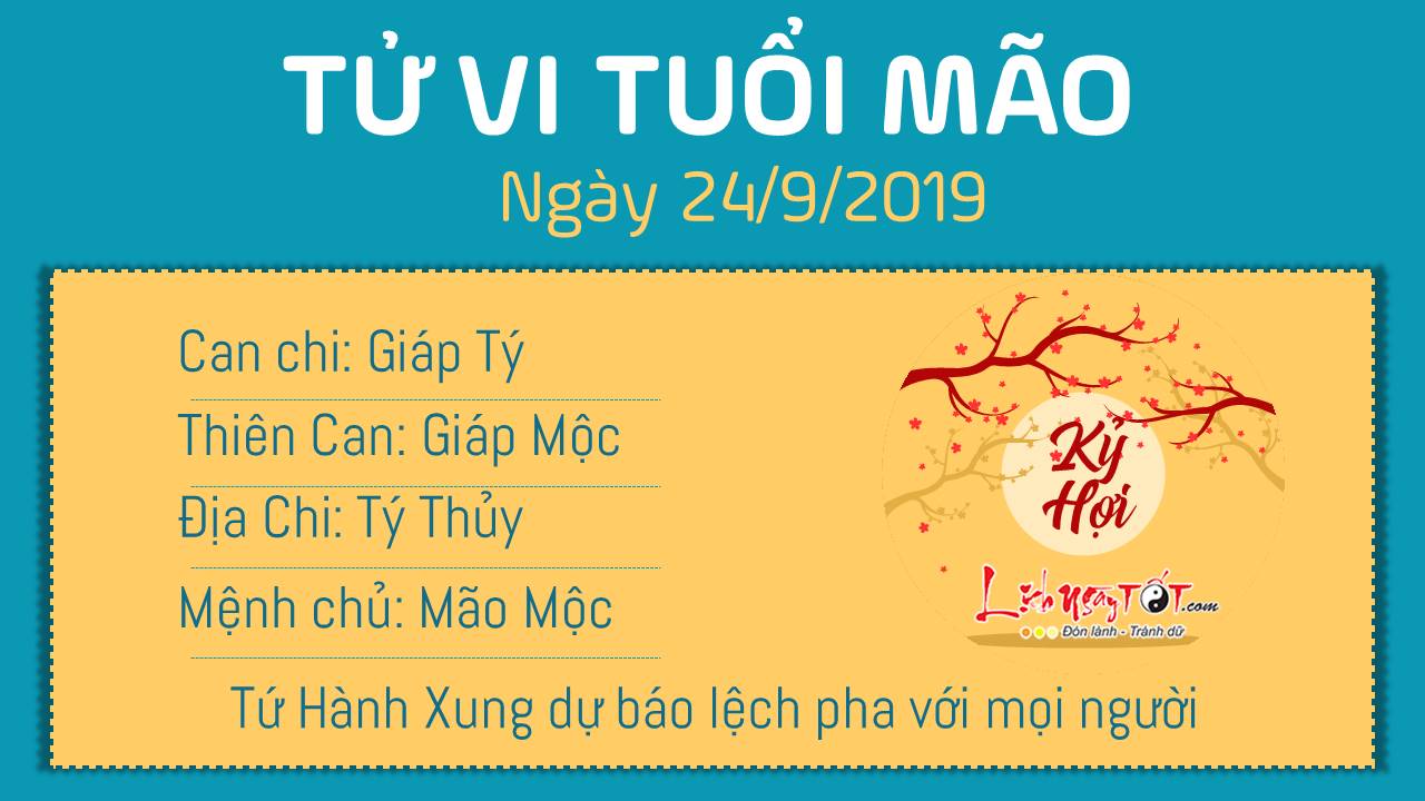 Tử vi ngày 24/9/2019 tức ngày 26/8 theo lịch âm năm Kỷ Hợi của 12 con giáp: