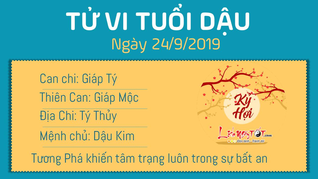 Tý Dậu Tương Phá khiến tâm trạng bản mệnh luôn trong sự bất an vì bạn có cảm giác ai đó đang cố tình gây ra tác động xấu cho cuộc sống của bạn. Thực ra, họ sẽ không gây ảnh hưởng xấu cho bạn bằng việc bạn tự suy nghĩ và gây hại cho mình đâu. Chính Quan dự báo người tuổi Dậu sẽ có một ngày làm việc rất hiệu quả với vô khối những dự án thành công. Tuy nhiên càng về cuối ngày, nhịp bước của bạn lại càng chậm lại vì lý do bạn đã bắt đầu mệt mỏi rồi. Thủy - Kim tương sinh dự báo sức khỏe của bản mệnh được cải thiện.