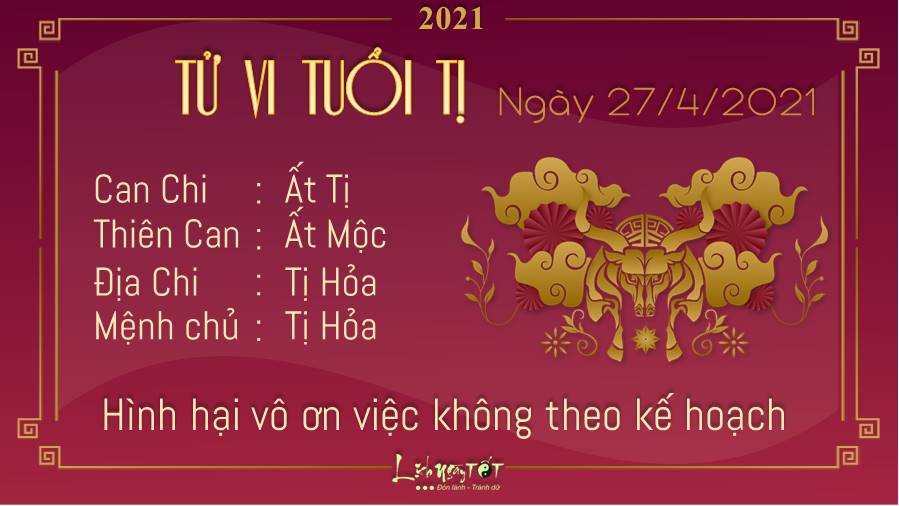 Hình hại vô ơn nên tuổi Tị cần cẩn trọng, có một số việc diễn ra không theo kế hoạch, bạn cần cân nhắc cẩn thận hơn. Đừng vì điều không vui mà có cái nhìn tiêu cực về mọi chuyện bạn nhé, đây là lúc để tỉnh táo đánh giá lại vấn đề. Ảnh hưởng của Thương Quan nên tuổi Tị có vẻ cứng đầu, không chịu khó học hỏi nên không những công sức của bạn không được ghi nhận mà còn bị trách mắng. Nếu bạn biết hạ bớt cái tôi và giả khờ khi cần có khi câu chuyện đã khác rồi. Hỏa khí vượng bản mệnh cần quan tâm nhiều hơn đến sức khỏe của bản thân. Nếu bạn cảm thấy thể trạng uể oải, tinh thần mệt mỏi thì có thể liên quan đến các bệnh về tim mạch hay thiếu máu thì cần sớm tìm phương pháp điều trị phù hợp.
