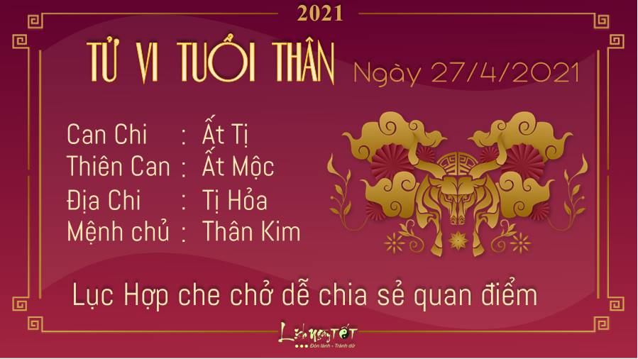 27/04/2021 13:00Tử vi thứ 3 ngày 27/04/2021 của 12 con giáp: Dần công danh tươi sáng, Hợi phải đối đầu với khó khăn