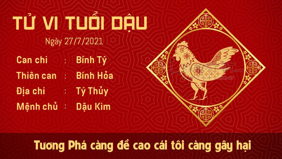 Tý Dậu Tương Phá chỉ ra rằng người tuổi Dậu càng đề cao cái tôi càng tự quyết mọi thứ một mình càng gây hại cho mối quan hệ tình cảm hiện tại. Bạn nên sớm hiểu ra rằng, sự tôn trọng lẫn nhau còn được thể hiện ở việc cả hai cùng bàn bạc, chia sẻ với nhau về những chuyện quan trọng của hai người. Tuổi Dậu thấy được ánh sáng để gia tăng thu nhập với sự hỗ trợ của Chính Tài. Khi có tiền, bạn nhớ trả nợ ngay nhé, khi bạn đã đưa ra lời hứa hẹn với ai đó, hãy thực hiện chúng. Ngũ hành tương sinh cho thấy sức khỏe của bản mệnh đảm bảo để bạn thực hiện những đam mê trong cuộc sống. Bạn rất ý thức việc này để tránh vì say mê công việc quá mà quên đi việc chăm sóc chính mình.