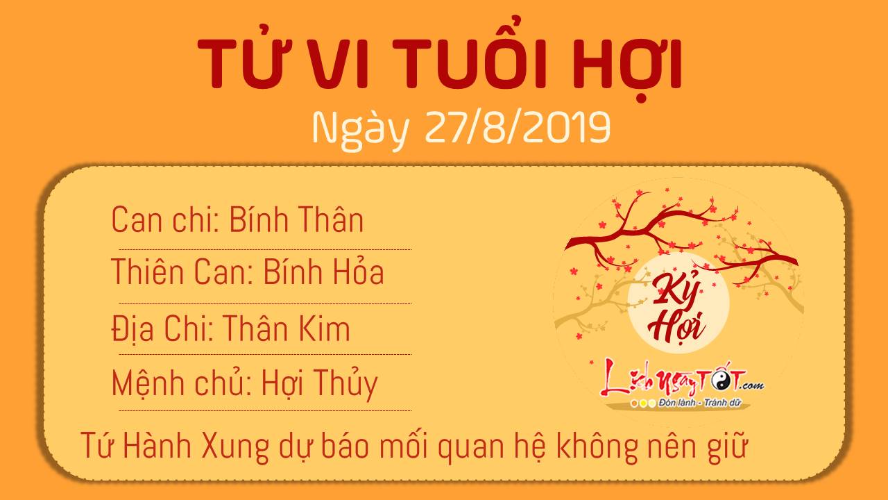 Ảnh hưởng của Tứ Hành Xung giúp bạn nhận ra hôm nay có thể vướng vào một tương tác với người nào đó mà bạn không nên giữ mối quan hệ. Thiên Quan xuất hiện trong ngày hôm nay điềm báo có nhiều việc khó thành. Lời khuyên dành cho người tuổi Hợi ngày hôm nay là nên thận trọng trong những quyết định quan trọng liên quan đến nghề nghiệp, chuyện tình cảm. Có lẽ bạn sẽ phải rất đau đầu khi đứng trước những ngã rẽ của riêng mình đấy. Ngũ hành tương sinh cho thấy có nhiều tín hiệu tốt cho những gì bạn đang theo đuổi.