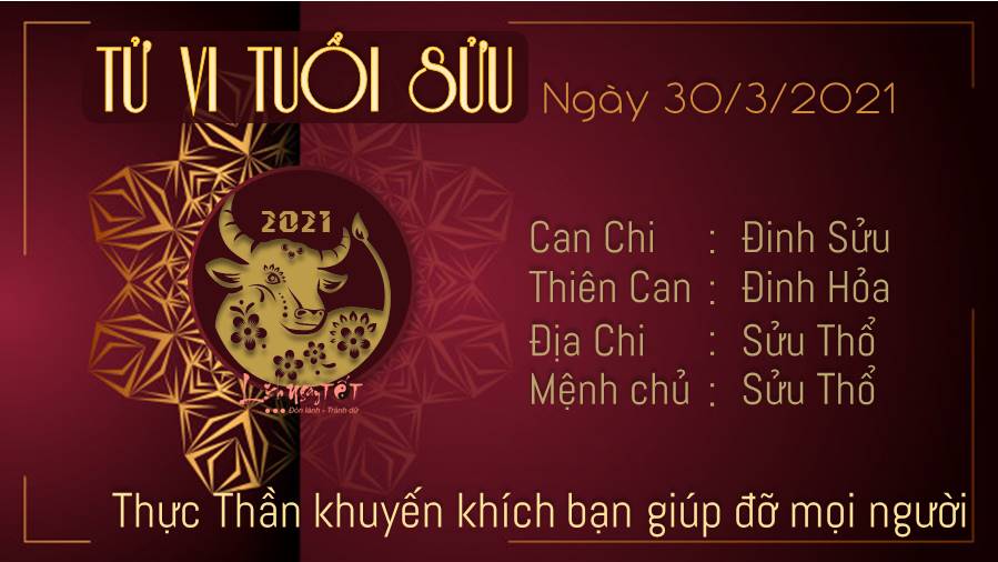 Thực Thần khuyến khích tuổi Sửu giúp đỡ những người xung quanh mình. Đừng quên rằng sự giúp đỡ là một con đường hai chiều: khi bạn giúp đỡ người khác, tức là bạn cũng giúp đỡ chính mình, và ngược lại, họ cũng sẽ giúp đỡ bạn bằng mọi khả năng có thể. Thế nên ngày hôm nay, hãy nhiệt tình để tìm thành công cho cả hai phía. Thổ khí vượng là thời điểm nhắc nhở bản mệnh nên chăm sóc sức khỏe của mình kỹ càng hơn, không được chủ quan dù là một biểu hiện nhỏ không tốt của cơ thể. Bạn nên đi khám sớm để có phác đồ điều trị phù hợp cho bản thân. Hôm nay bản mệnh lưu ý rằng việc khởi công tạo tác việc gì cũng không tốt. Kỵ nhất là chôn cất, sửa đắp mồ mả, đóng thọ đường.