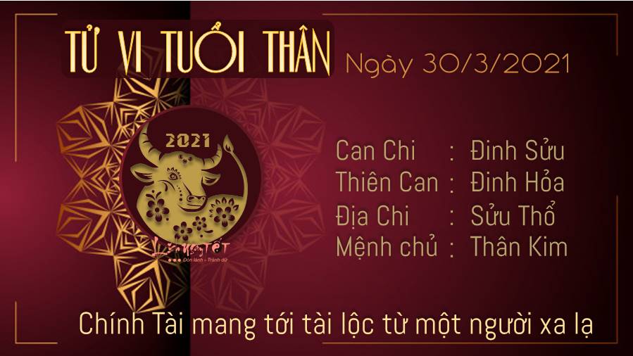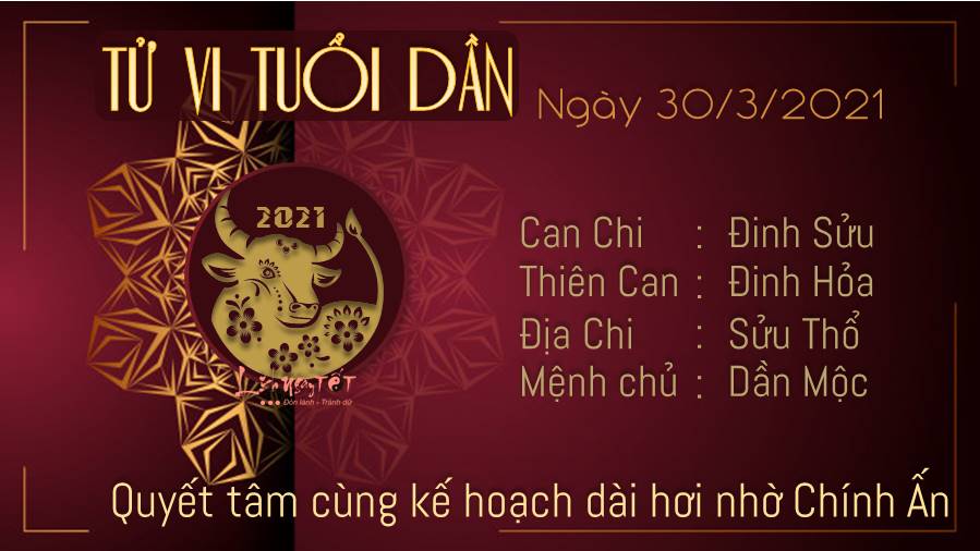 Sức mạnh nội lực tuổi Dần chính là sức mạnh lớn nhất của bạn ngày hôm nay khi có Chính Ấn ghé thăm. Thông qua đó, bạn có thể lần lượt thực hiện được từng mục tiêu một mà bản thân đã ấp ủ từ lâu. Mộc - Thổ xung khắc nhắc nhở bạn nên dành thời gian chăm sóc sức khỏe của mình nếu không tương lai sẽ có nhiều bệnh tật. Lối sống thụ động, ngồi lì một chỗ rồi cặm cụi với máy tính ngày này qua ngày khác chỉ khiến cơ thể bạn trì trệ và mắc nhiều căn bệnh về xương khớp. Ngày 30/3/2021 dương lịch là ngày Can Đinh: Ngày can Đinh không trị bệnh ở tim. Do đó, bản mệnh lưu ý không tác động lên vị trí này trong ngày hôm nay.