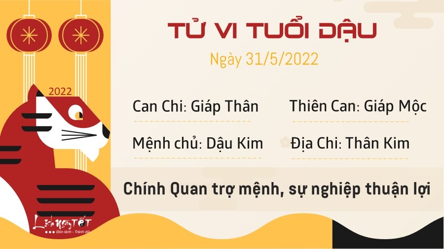 Chính Quan xuất hiện, tuổi Dậu gặp nhiều may mắn ở phương diện công danh sự nghiệp. Cát thần này sẽ giúp bạn có được cơ hội hợp tác với nhiều người có chuyên môn cao và dày dặn kinh nghiệm. Bản mệnh có thể sẽ trở thành trung tâm của nhóm và gặt hái được nhiều thành công. Tài vận cũng được cải thiện nhờ những nỗ lực và sự tích lũy không ngừng nghỉ trong suốt thời gian vừa qua. Thu nhập được đảm bảo tạo ra sự tự tin cho con giáp này. Nhờ vậy, bạn cũng có thể mạnh dạn theo đuổi những ước mơ mà bản thân đã ấp ủ từ lâu. Ngày 31/5/2022 này là ngày Ngày Sát chủ, thuộc Bách kỵ, tức trăm sự đều kỵ, không nên làm các việc trọng đại, bất kể đối với tuổi nào. Bạn nên lưu ý vấn đề này để sắp xếp công việc phù hợp.