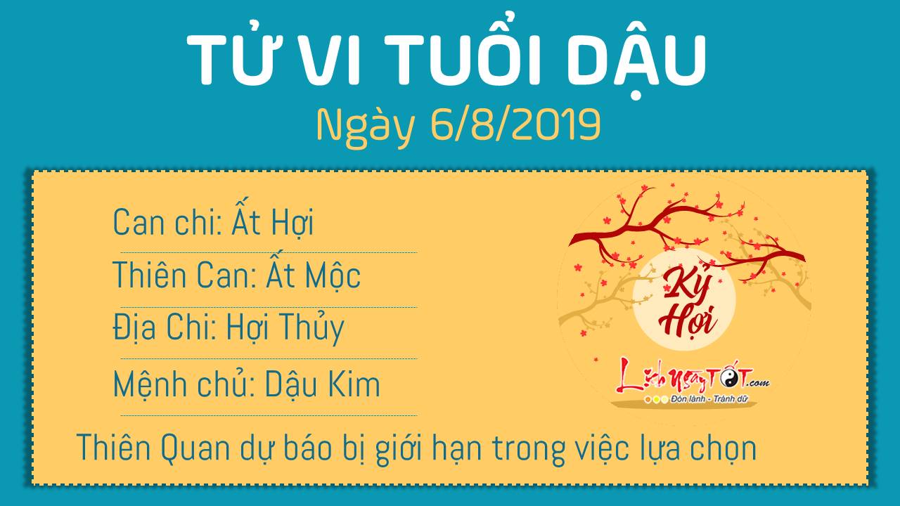 Thiên Quan dự báo ngày hôm nay người tuổi Dậu sẽ bị giới hạn trong việc lựa chọn, phần nhiều liên quan đến cấp trên hoặc những người xung quanh bạn. Dù gì đi nữa thì hãy cố gắng giữ cho bản thân sự điềm tĩnh cần thiết. Thủy - Kim tương sinh hỗ trợ cho các mối quan hệ trở nên hài hòa, vui vẻ hơn. Buổi chiều hứa hẹn sẽ đem đến một vài thông tin thú vị của bạn bè, người thân, hoặc bạn sẽ mua được một món đồ mà mình thích thú. Ngày 6 âm lịch nhân thần ở lòng bàn tay, trước ngực và trong ngực, tránh mọi sự tổn thương tại vị trí này.